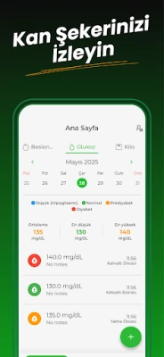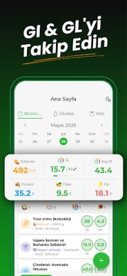 Glisemik İndeks: Diyabet ile ölçümlerinizi kaydetmek ve analiz etmek hiç bu kadar zahmetsiz olmamıştı. Geniş gıda veri tabanı sayesinde binlerce ürünün GI, GL, kalori ve besin değerlerine anında erişim sağlayın. Kan şekeri, karbonhidrat ve kalori değerlerinizi düzenli olarak günlüğünüze işlerken, ilerlemenizi görsel grafikler ve detaylı analizlerle takip edebilirsiniz. Önemli ölçümler veya öğün kayıtları için kişiselleştirilebilir hatırlatıcılar sayesinde hiçbir detayı atlamayın, sağlıklı bir düzen kurmak artık çok daha kolay.