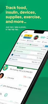 Gluroo'nun en dikkat çekici özelliklerinden biri, sektör lideri yapay zeka destekli karbonhidrat sayma aracıdır. Yemeklerinizin fotoğrafını çekmeniz yeterli; uygulama, karbonhidrat, kalori, protein, şeker ve daha fazlasını içeren besin değerlerini otomatik olarak tahmin eder. Sezgisel arayüzü sayesinde birkaç dokunuşla veya "5 ünite dozladım" gibi metin/sesli komutlarla tüm önemli verileri hızlıca kaydedebilirsiniz. Yiyecekler, Dexcom (G7, G6, G5) veya Freestyle Libre sensörlerinden gelen CGM okumaları, manuel parmak ucu ölçümleri, manuel veya akıllı kalemlerden gelen insülin dozları, Omnipod 5 gibi pompaların otomatik verileri ve Google Health Connect'ten alınan egzersiz bilgileri Gluroo ile kolayca günlüğe işlenir. Hatta yeni pompa veya sensör değişimlerini takip etmek için QR kodunu tarayarak son kullanma tarihlerini izleyebilir ve zamanında hatırlatıcılar alabilirsiniz.