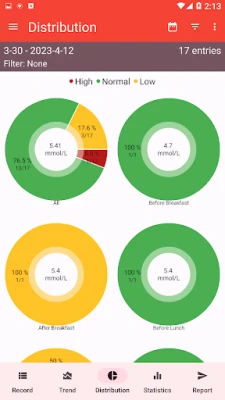 Her bir kan şekeri ölçümünüzü kolayca detaylı kayıtlar oluşturarak işleyin ve gün boyunca seviyelerinizin nasıl değiştiğini kapsamlı bir şekilde gözlemleyin. Uygulama, girdiğiniz değerleri anında analiz ederek, glikoz seviyenizin "yüksek", "düşük" veya "normal" aralıkta olup olmadığını otomatik olarak belirler. Bu sayede, verilerinizi yorumlamak için zaman kaybetmez, anında kritik bilgilere ulaşırsınız. Ayrıca, ölçümlerinize ekleyebileceğiniz özelleştirilebilir etiketler sayesinde, verilerinizi yemek öncesi/sonrası veya egzersiz sonrası gibi farklı kategorilere ayırarak, yaşam tarzınızın kan şekerinizi nasıl etkilediğini derinlemesine anlayabilirsiniz. Glikoz seviyelerinizin maksimum, minimum ve ortalama değerlerini özetleyen kapsamlı raporlarla genel eğilimleri zahmetsizce takip edin.